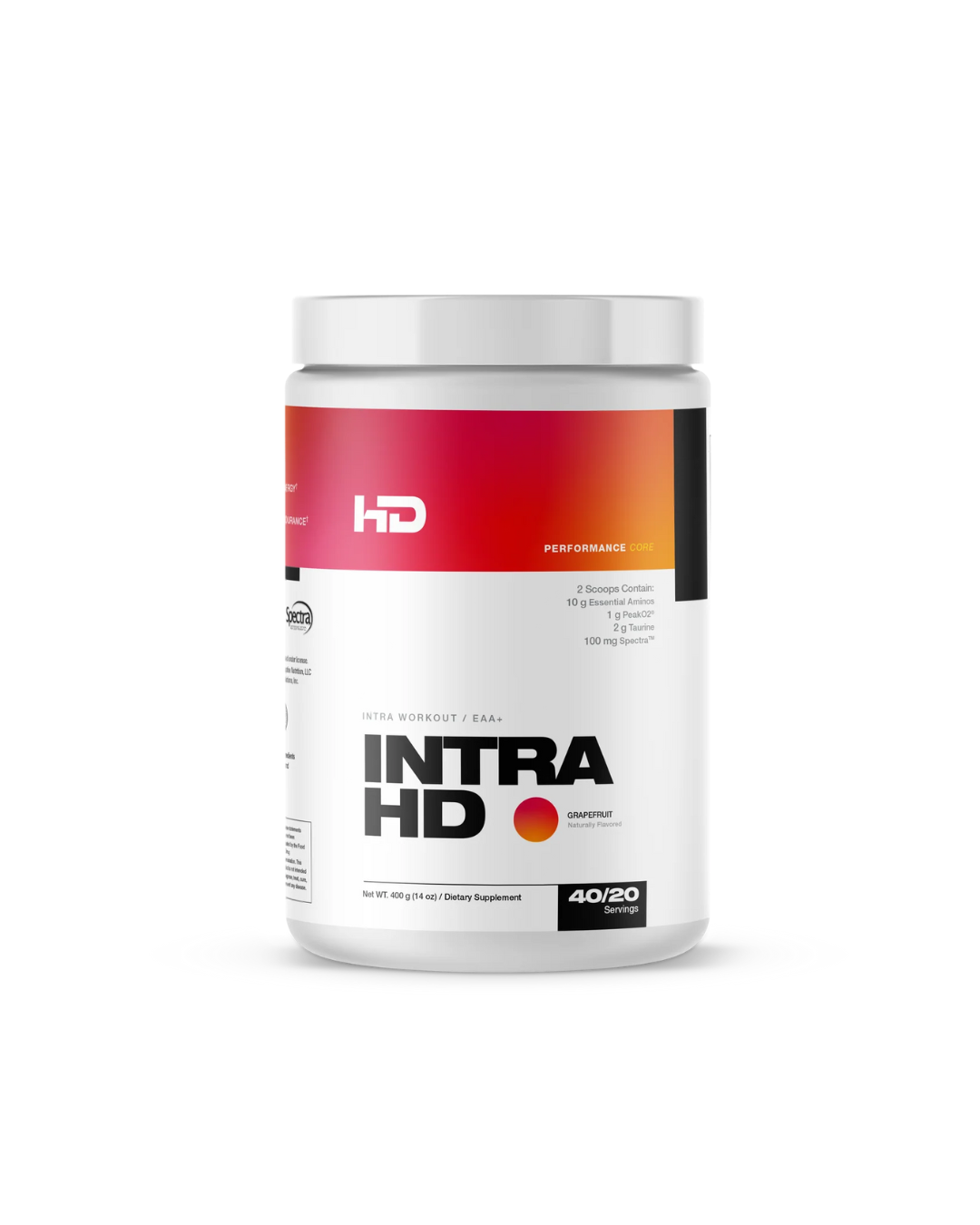 INTRA-HD est un produit intra-entraînement amélioré conçu pour améliorer l'endurance musculaire et la récupération; vous aidant à dépasser votre dernier représentant et à démarrer rapidement votre protocole de récupération musculaire. La formule innovante derrière INTRA-HD combine des ingrédients clés validés cliniquement à des doses efficaces pour fournir des résultats inégalés qui ne sont généralement pas rencontrés par d'autres produits d'acides aminés sur le marché aujourd'hui. INTRA-HD contient dix grammes des neuf acides aminés essentiels, fournissant efficacement à vos muscles tous les acides aminés nécessaires pour maximiser la synthèse des protéines et améliorer le développement musculaire et la récupération.