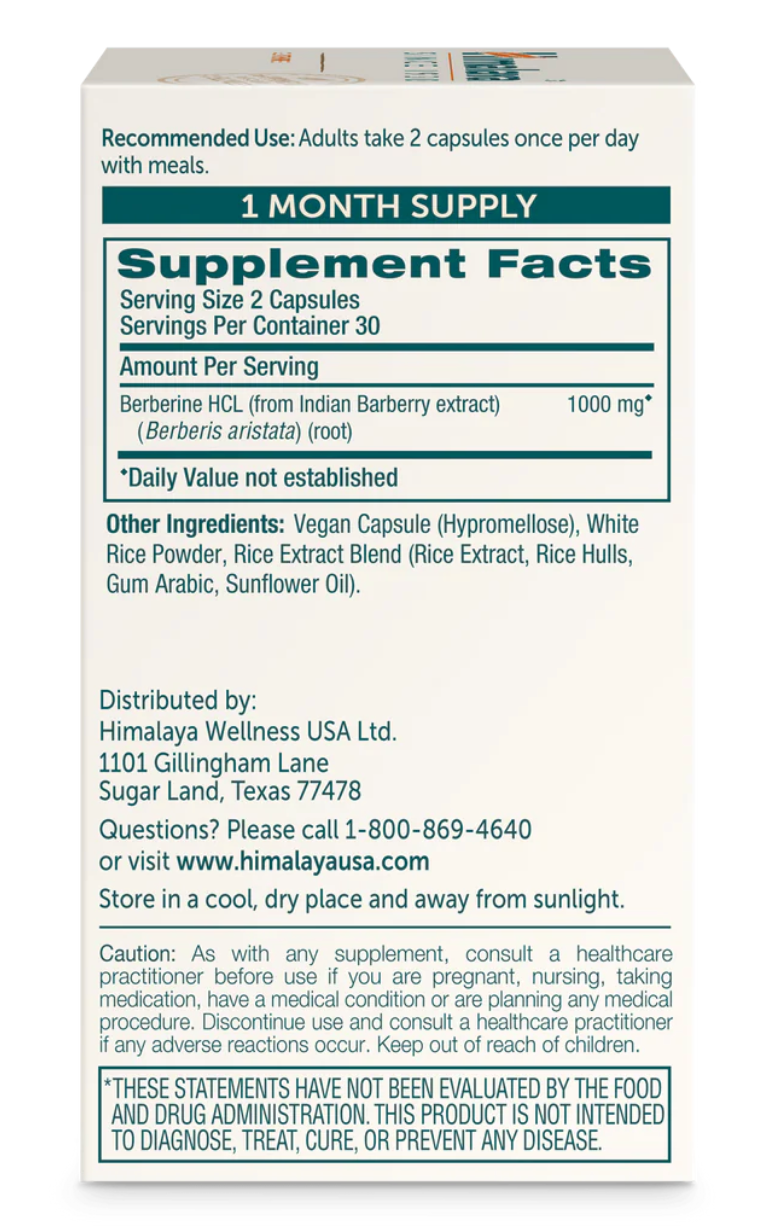 Avec 1 000mg de chlorhydrate de berbérine issu de la racine d'épine-vinette dans chaque dose de deux capsules, Himalaya Berberine est un moyen simple d'intégrer une touche de fraîcheur à votre routine de bien-être quotidienne.