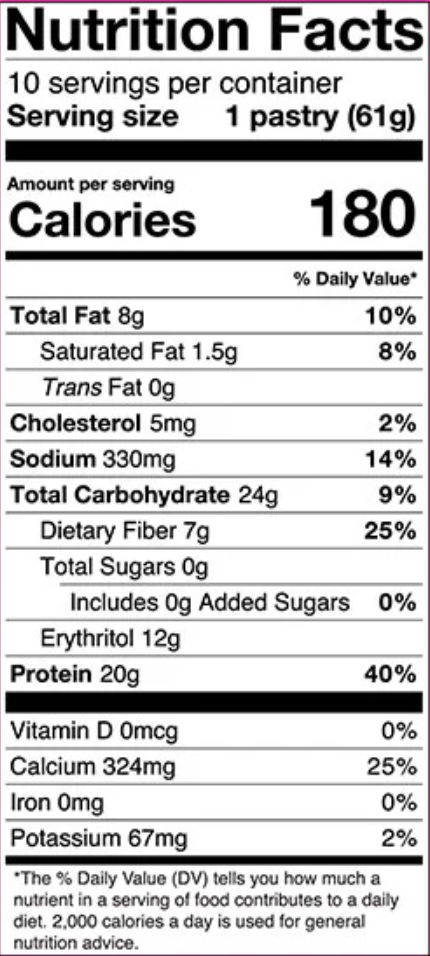 Savourez le goût de votre enfance sans sucre. La pâtisserie savoureuse Legendary Foods est une collation douce, sucrée et délicieuse que vous pouvez manger dès la sortie de l'emballage ou griller légèrement pour une expérience chaleureuse. Legendary Foods a pu fabriquer un produit que vous avez mangé pendant votre jeunesse sans ce dont ils étaient faits : les glucides et le sucre. Ces pâtisseries conservent toutes les sensations saines et le goût délicieux tout en éliminant le pic de glycémie, créant une version à partir de vrais aliments qui soutient vos objectifs nutritionnels et vous permet de manger comme un enfant à nouveau!