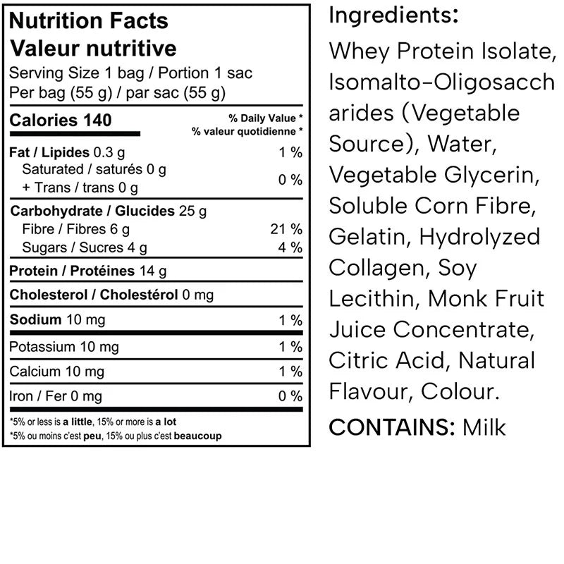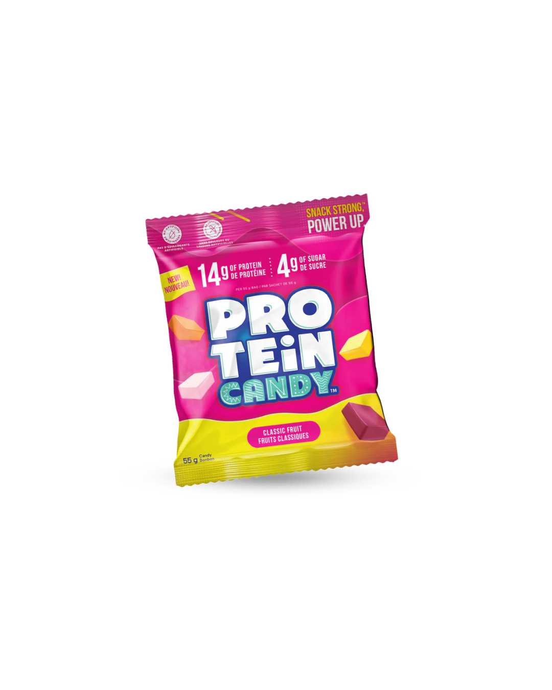 Protein Candy est conçu pour transformer votre passion pour les bonbons en un véritable boost avec 14 g de protéines, 6 g de fibres et seulement 4 g de sucre par sachet!