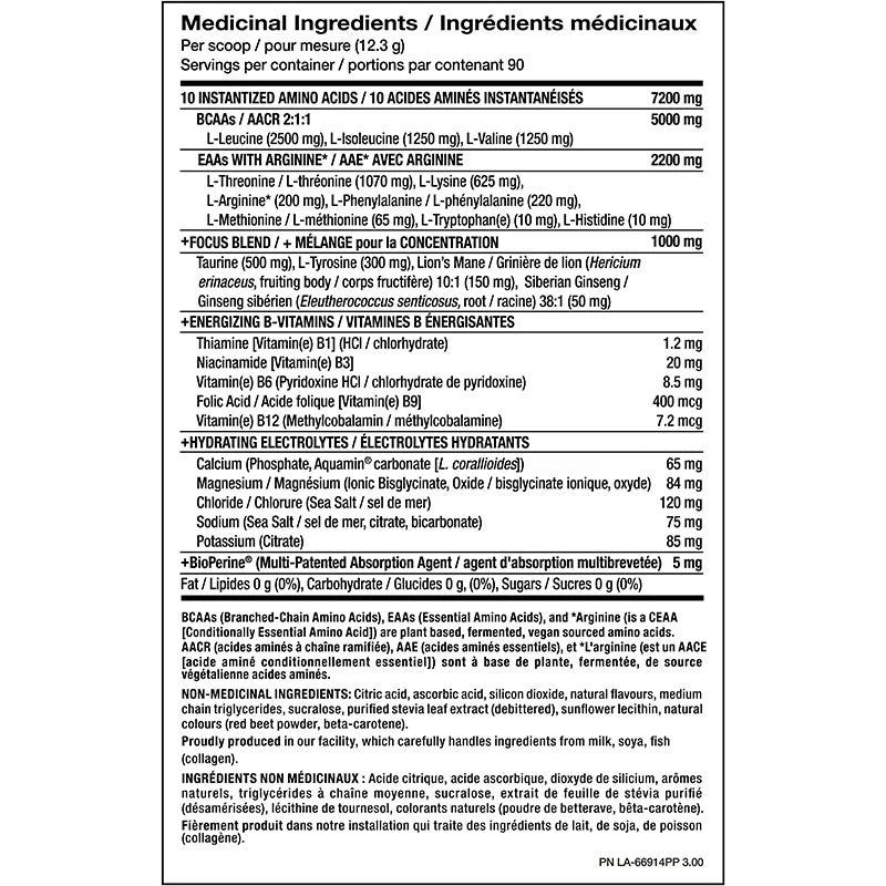 EAA™ est un mélange complet d'EAA (acides aminés essentiels). Il existe 9 acides aminés essentiels, dont 3 sont également connus sous le nom de BCAA (acides aminés à chaîne ramifiée). De plus en plus de recherches montrent qu'un mélange EAA complet (y compris les BCAA) montre une meilleure croissance et une meilleure récupération qu'en ajoutant simplement des BCAA seuls. L'ajout de L-Arginine (CEAA) facilite le transport total des acides aminés. Avec un mélange de concentration sans stimulant, des vitamines B énergisantes, les 5 électrolytes et une dose de 100% de l'agent d'absorption breveté, BioPerine® EAA Complete ™ est la formule la plus complète du genre - prête pour tous les sports .