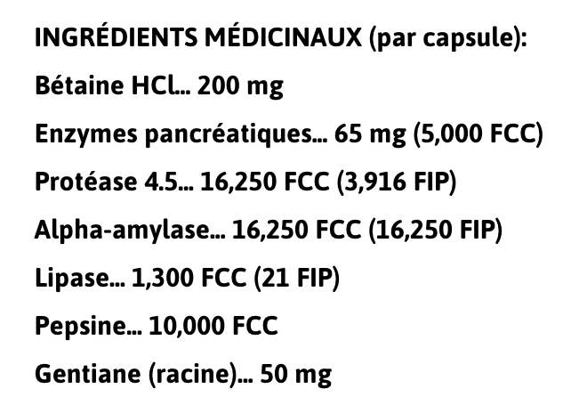 Pro Digest est une formule d’aide à la digestion. L’acide chlorhydrique (HCl) est un élément essentiel à la bonne digestion des aliments.