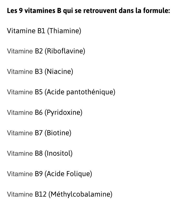 La formulation Pure B Complex est composée des 9 vitamines hydrosolubles.